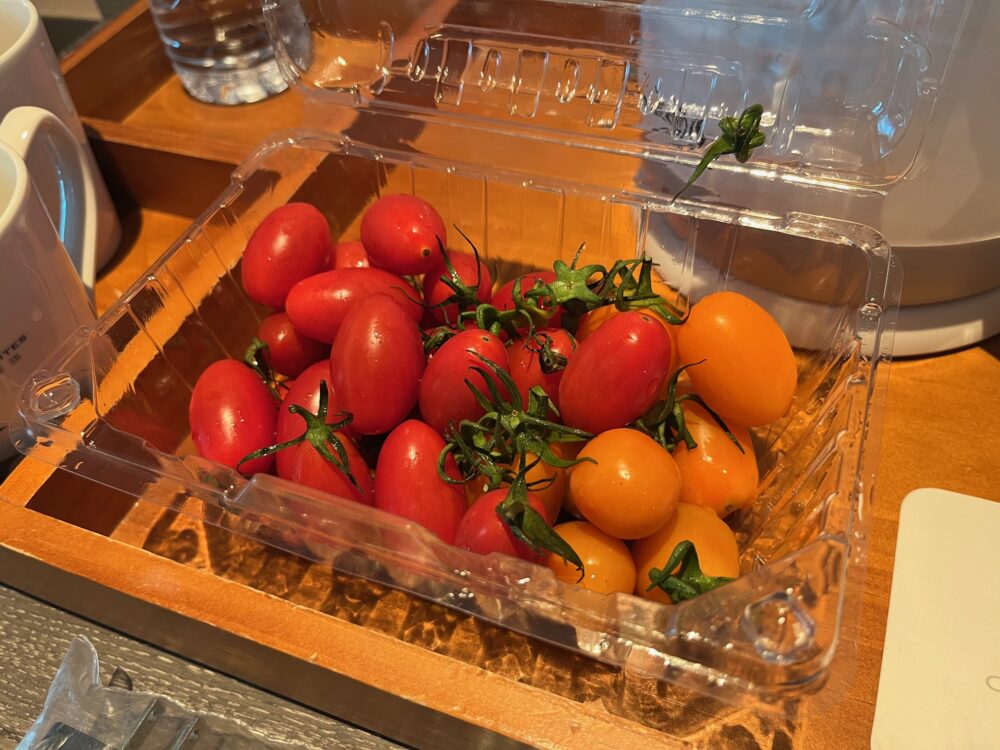 途中、畑の前で売っている「橙蜜香」と「玉女」を買いました。美濃の有名な特産品でとても甘いプチトマトです。
