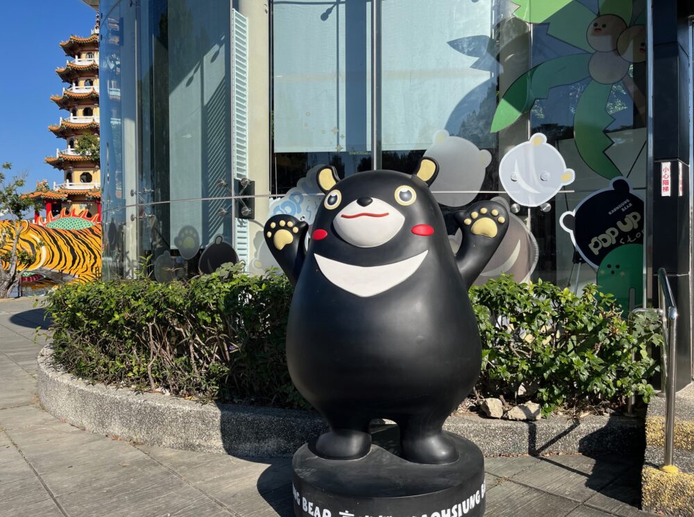 この熊は高雄熊(ヒーロー)と言うらしく、パチモンではなく正式なキャラクターのようで、くまもんとも姉妹関係なんだそうです。